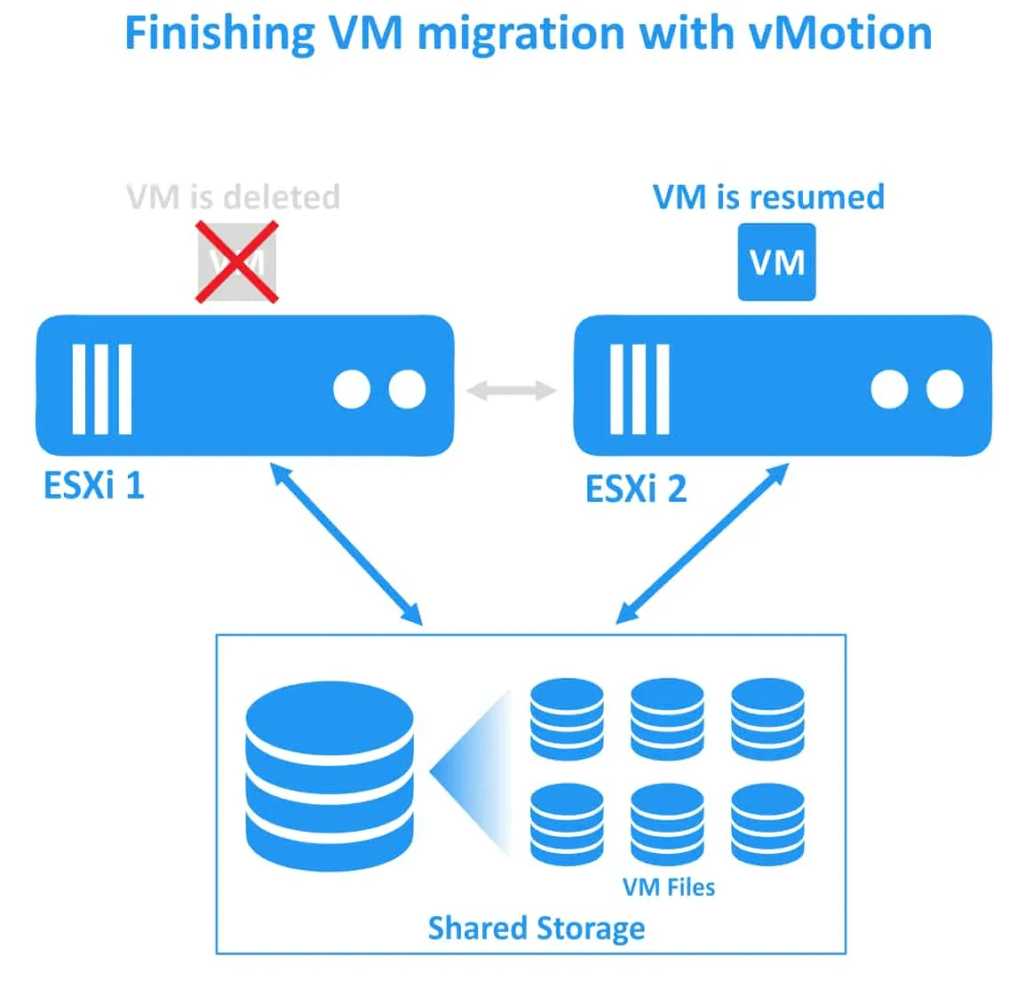 1. vMotion creates a shadow VM on the destination ESXi host. The destination ESXi host pre-allocates enough resources for the VM to be migrated. The VM is put in the intermediate state and the VM configuration cannot be changed during migration.