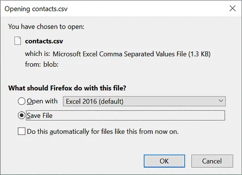 Guarde el archivo contacts.csv en una ubicación personalizada.