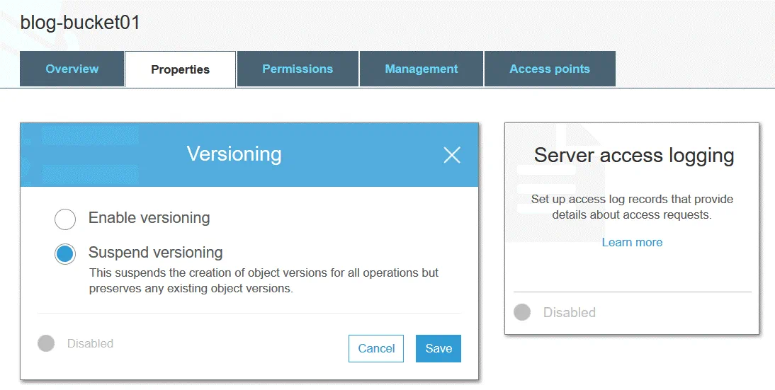 El control de versiones de objetos permite almacenar varias versiones de un objeto en un mismo cubo. Esta función puede proteger los objetos almacenados en Amazon S3 frente a ediciones, sobrescrituras o eliminaciones no deseadas. Después de modificar o eliminar un objeto, puede restaurar una de las versiones anteriores de ese objeto. El control de versiones se implementa gracias al uso del enfoque de almacenamiento de objetos. Puede utilizar el control de versiones con fines de archivo. El control de versiones está desactivado por defecto.