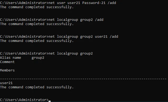 net localgroup group2 user21 /add