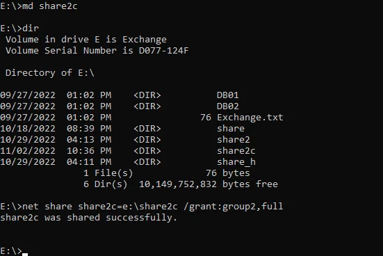 net share share2c=e:\share2c /grant:group2,full