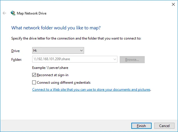 net use H: \\FileServer\SharedFolder