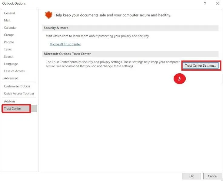 - En la nueva ventana, seleccione Centro de confianza y, a continuación, haga clic en Ajustes del Centro de confianza.