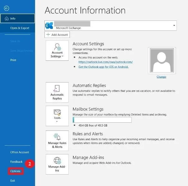 - Seleccione Opciones en el panel izquierdo.