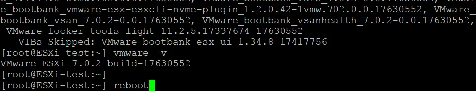 - Reinicie el host ESXi para finalizar la actualización de ESXi: