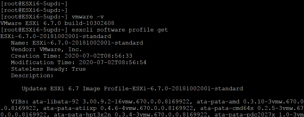 esxcli software profile update -d https://hostupdate.vmware.com/software/VUM/PRODUCTION/main/vmw-depot-index.xml -p ESXi-7.0U2d-18538813-standard --dry-run