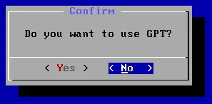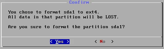 Confirmar. Seleccione Sí para confirmar que desea formatear la partición sda1.
