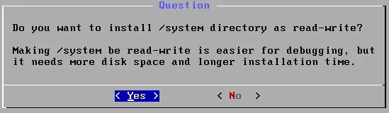 Cuando aparezca la siguiente pregunta(¿Desea instalar el directorio /system como lectura-escritura?), seleccione Sí.