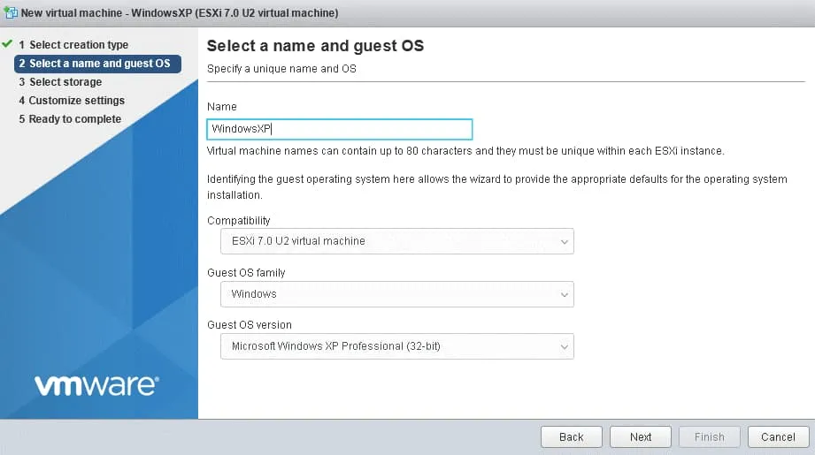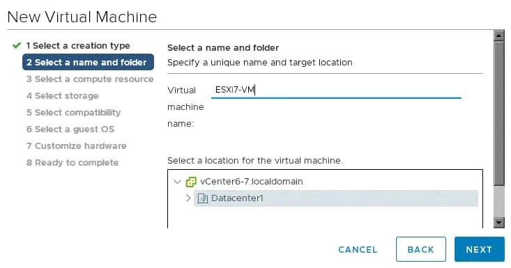 Ahora cree una nueva máquina virtual en la que instalará ESXI 7.0.3.