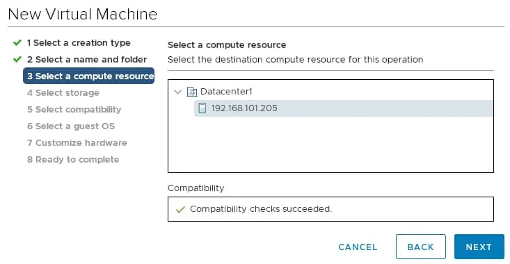 - Seleccione el host ESXi necesario(192.168.101.205 en este caso).