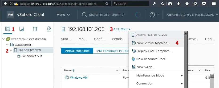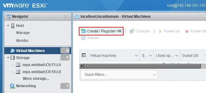 Vaya a Máquinas Virtuales en el panel Navegador y haga clic en Crear / Registrar VM.