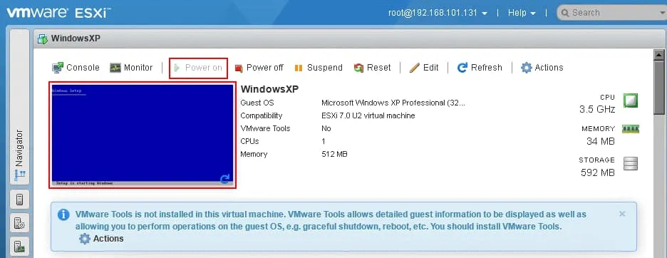 - Vaya a VMware vSphere Client y seleccione la ESXi7-VM.